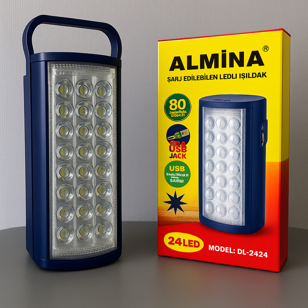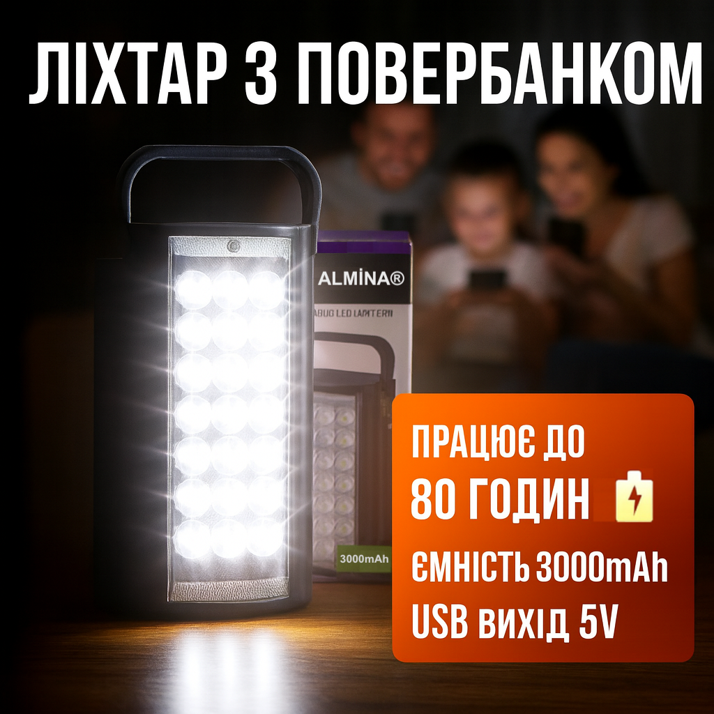 Ліхтар “Алміна” має вищу ціну, тому що використовується якісніша внутрішня начинка. По-перше, встановлений надійніший акумулятор — не звичайний бюджетний елемент, який швидко зношується, а батарея підвищеної ємності та витривалості. Саме вона забезпечує реальні 80 годин роботи без підзарядки